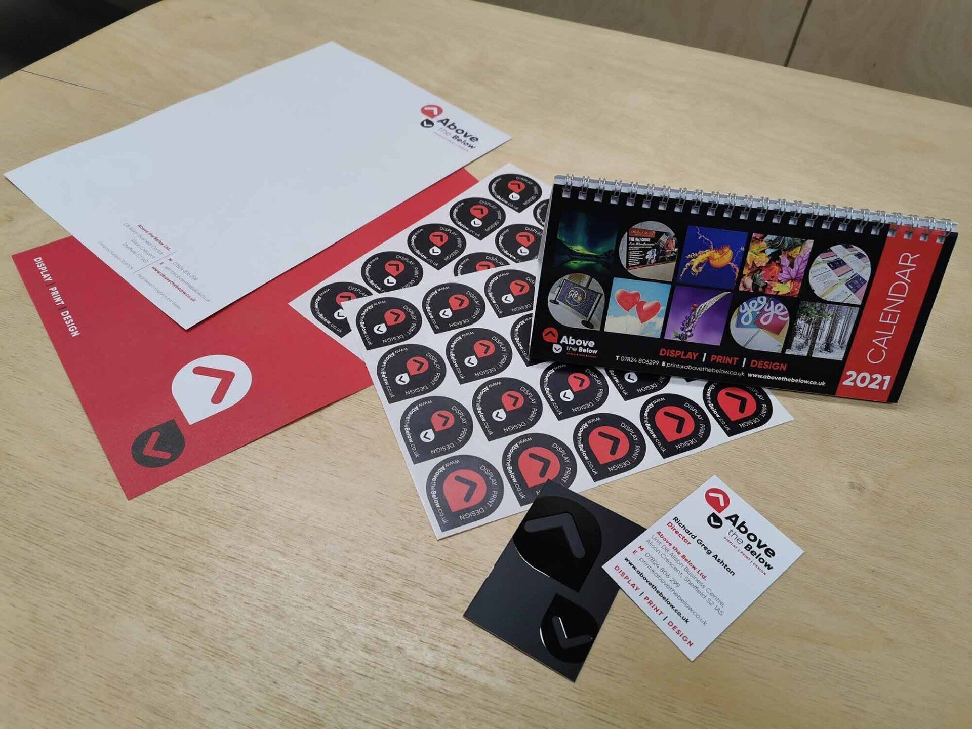 Everything you need printing from small business cards and leaflets to large banners and signage can be printed at Above the Below, Sheffield. Whether you want to print on paper, vinyl stickers, perspex, metal, clothing etc - we are the printers for you.