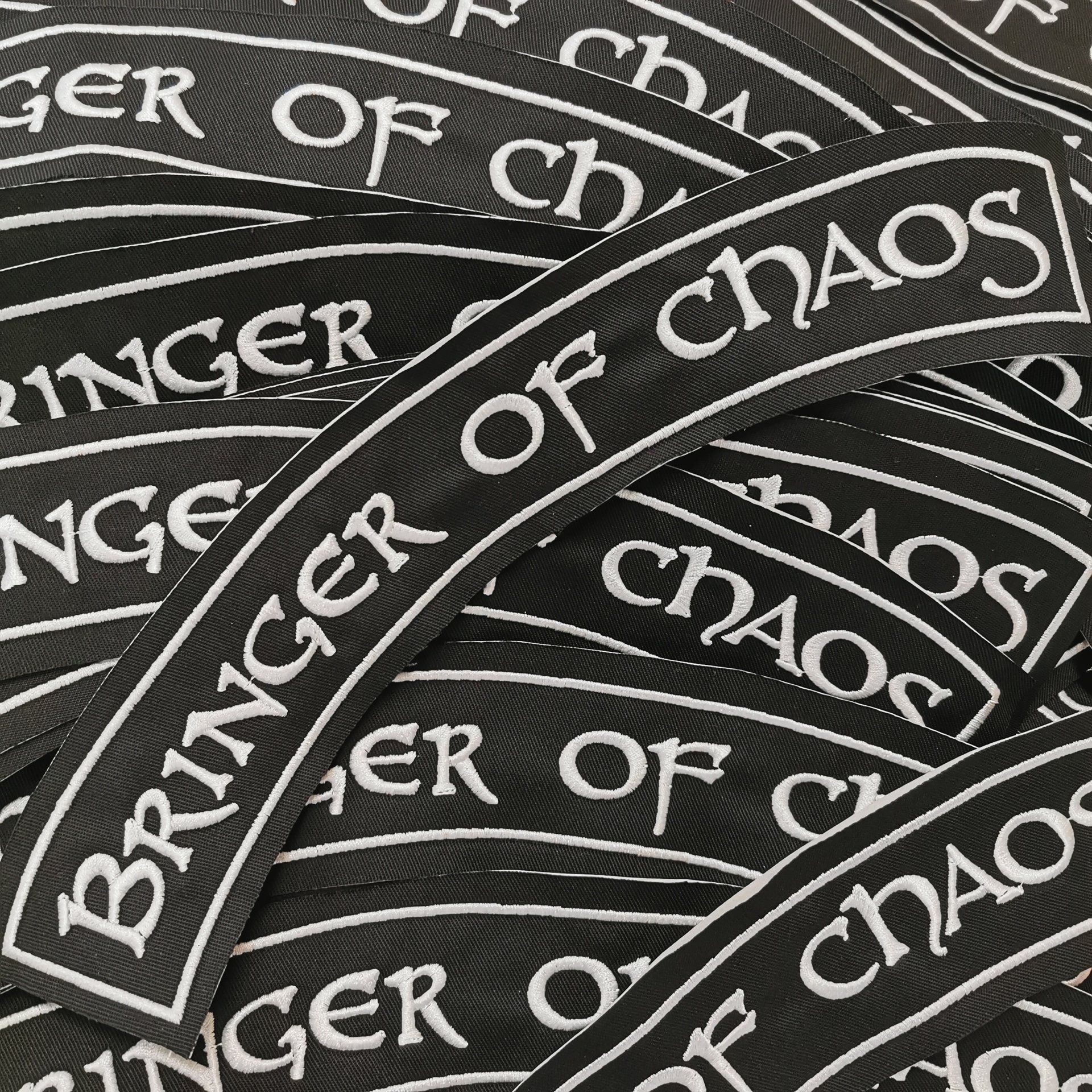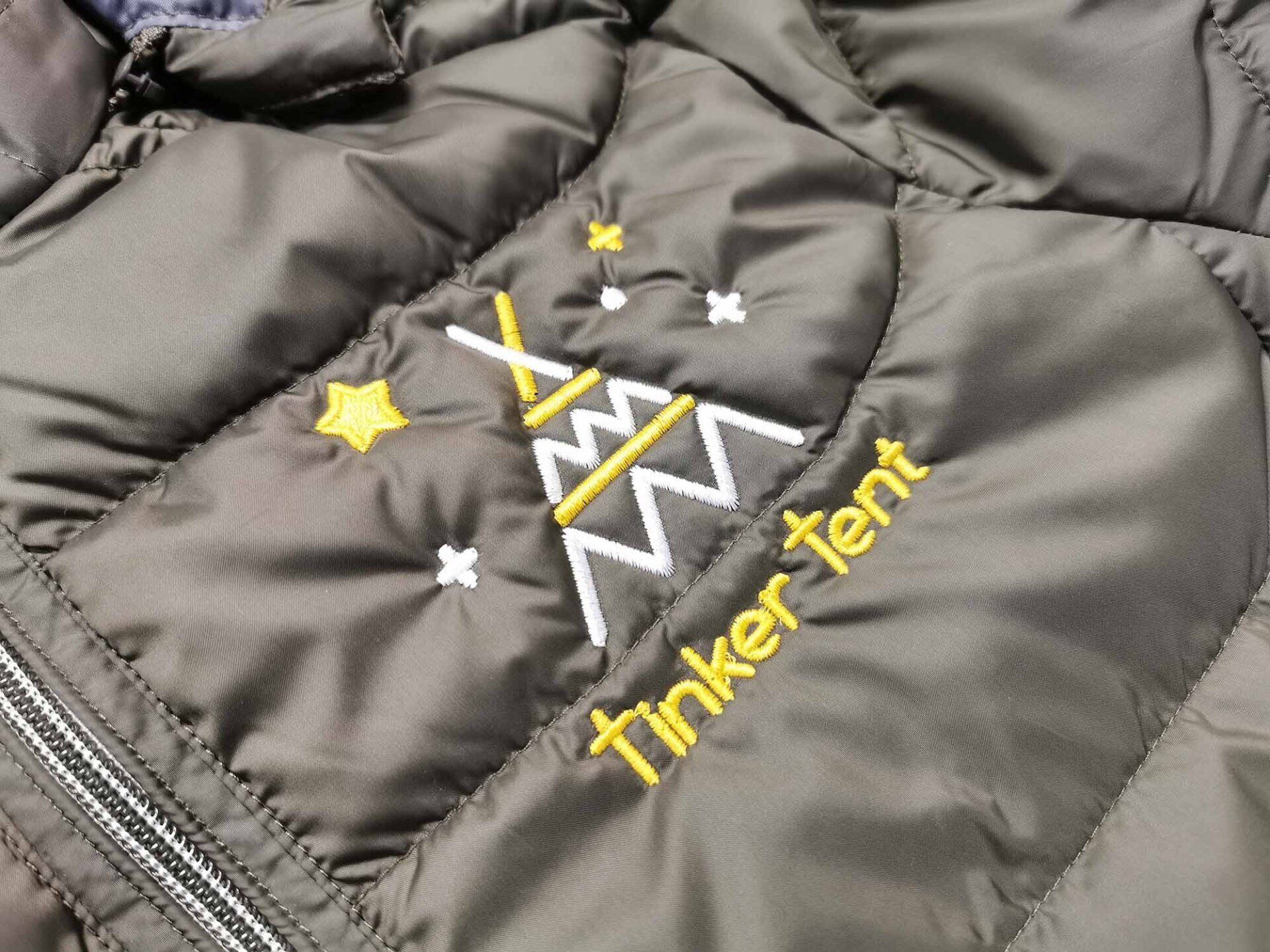 multiple thread colours, from small logos to large logos and larger writing across the back - such as contact details.
